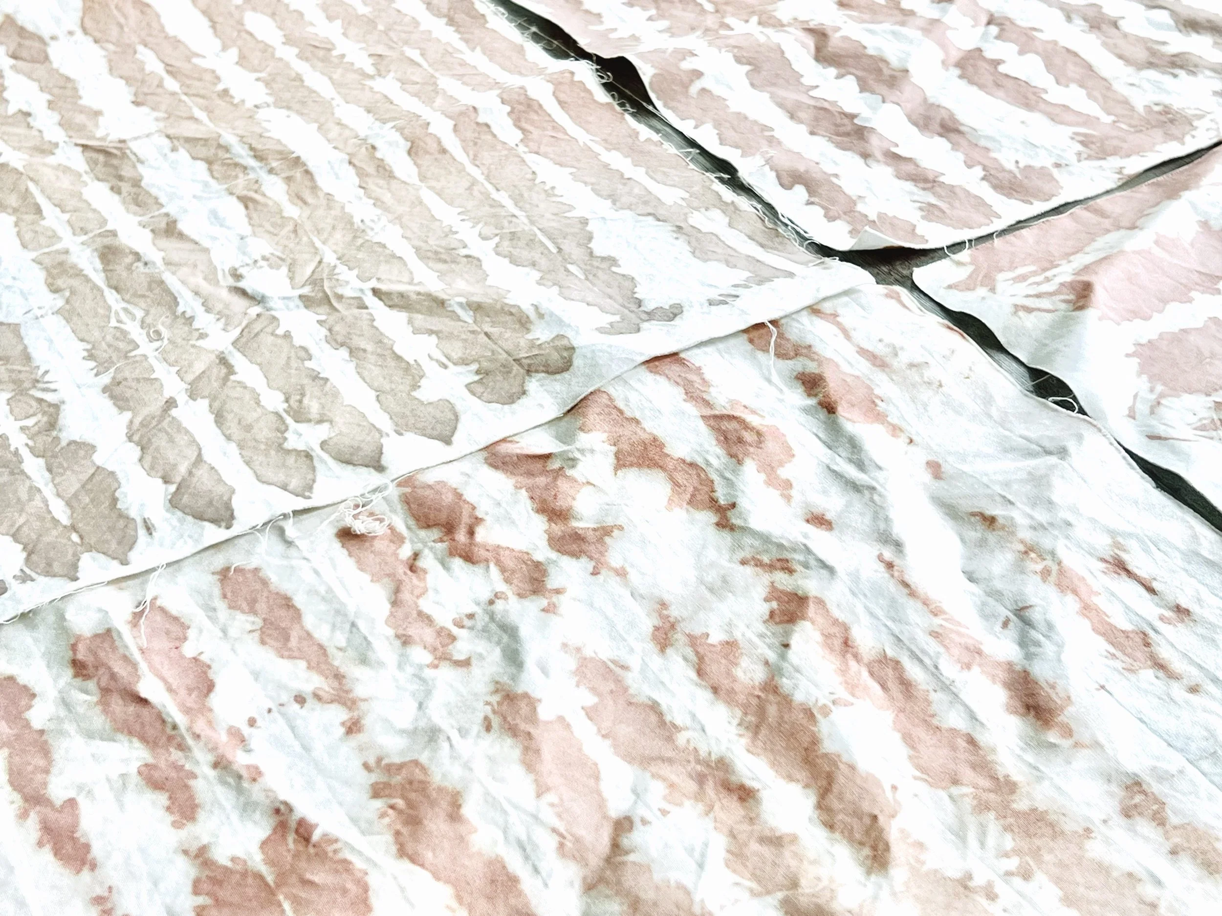 Some of our materials come to us already dyed or printed with patterns that we incorporate or manipulate into new designs. For others, we also use natural dyes and inks from plants, flowers, and food waste. This creates beautiful designs in nature's palette that pull inspiration from heritage craft textile traditions worldwide.